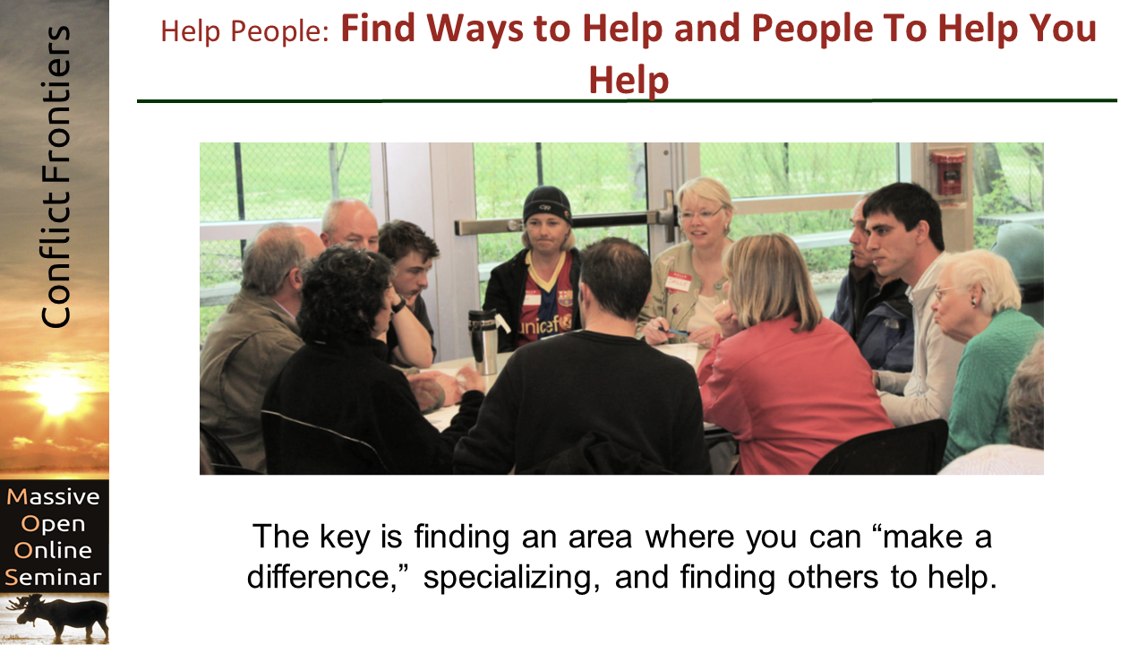 It's also important to find opportunities for "scaling up" efforts wherever possible because, somehow, we have to go from having very small numbers of people interested in the peacebuilding problem to having enough people active to change a society with millions of people.