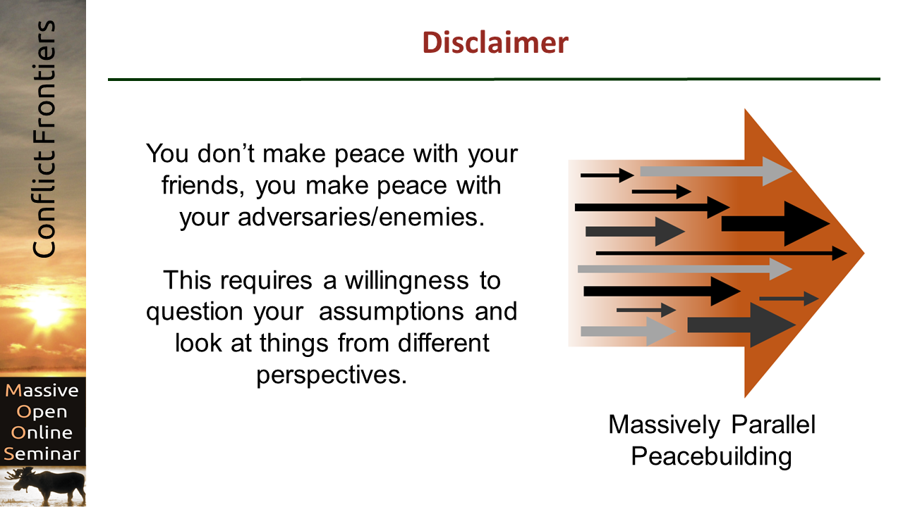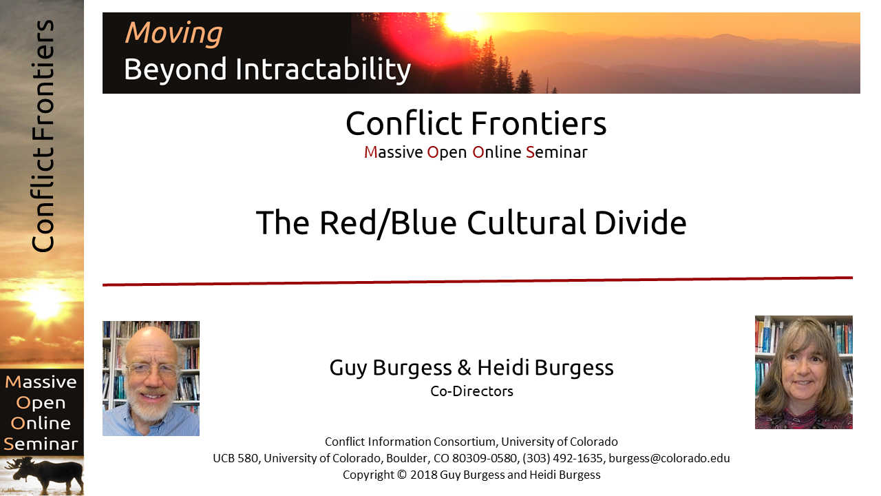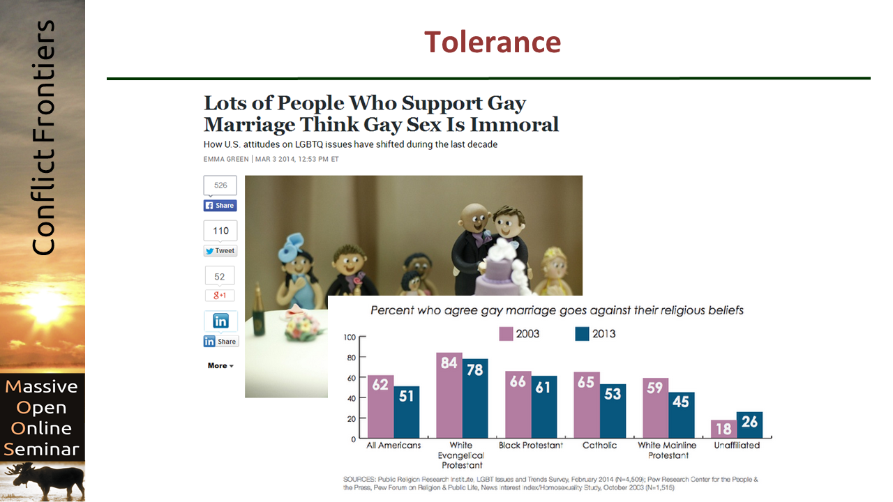 Slide 36. Two big ideas, tolerance and coexistence, provide what I think is the best approach to handling cultural divides. (There are articles on these concepts on Beyond Intractability.) If the evolutionary neurobiologists are right and all societies have these groups, then the only way in which they can live in peace is with the spirit of coexistence and a willingness to let everybody live the way they want to live and to tolerate differences (as long as they let others do the same).