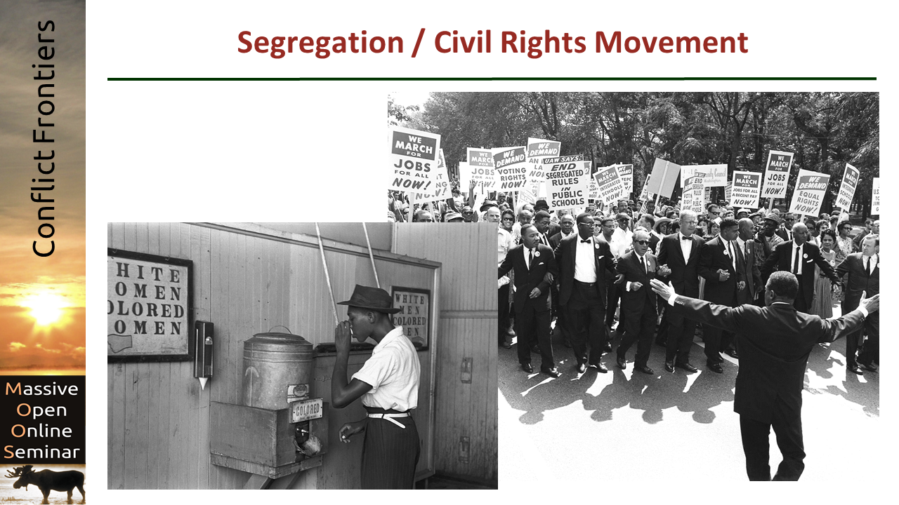 - Slide 10: March on Washington -- Source: https://upload.wikimedia.org/wikipedia/commons/thumb/7/7f/March_on_washington_Aug_28_1963.jpg/1280px-March_on_washington_Aug_28_1963.jpg; By: United States Information Agency; Permission: Public Domain. “Colored” Drinking Fountain – Source: https://fr.m.wikipedia.org/wiki/Fichier:%22Colored%22_drinking_fountain_from_mid-20th_century_with_african-american_drinking.jpg; By: Russell Lee; Permission: Public Domain
