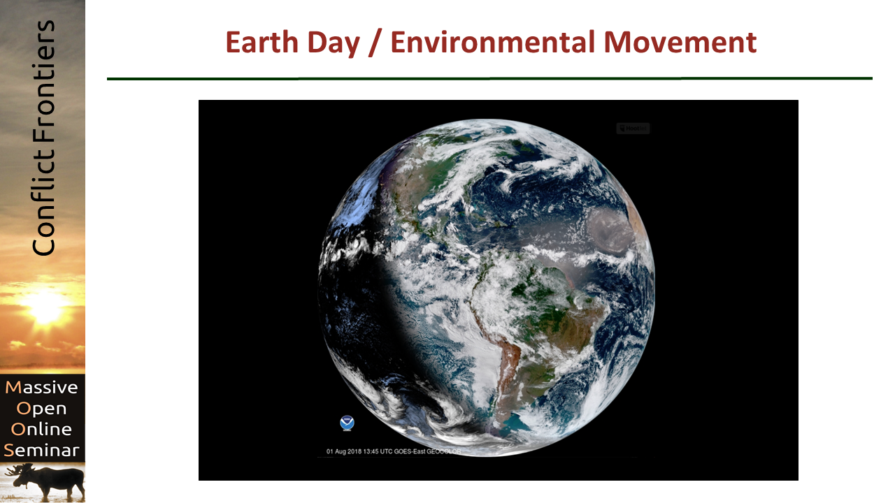 Slide 16. This was also the time of Earth Day and the rise of the Environmental Movement. Folks who weren't alive back then have trouble understanding just how terrible the pollution problem was. Today, we sometimes talk about a brown cloud in Denver. Back then it was a black cloud. I remember seeing pictures of 50 foot walls of soap suds coming off Lake Erie. This was the time when the Cuyahoga River--in Cleveland-- literally caught fire--four times!-- because it was so polluted.