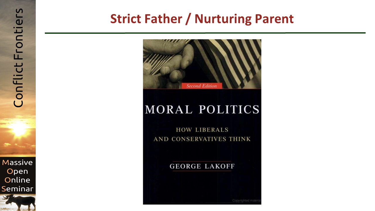 Slide 27. Since there is a high degree of similarity between the various theories on this topic, I'm going to just highlight a couple of ideas. George Lakoff has written a lot on the nature of these cultural differences and I recommend his work. In particular, I like his distinction between conservative, "strict father," "father knows best" cultures and the "nurturing parent" culture of progressives.