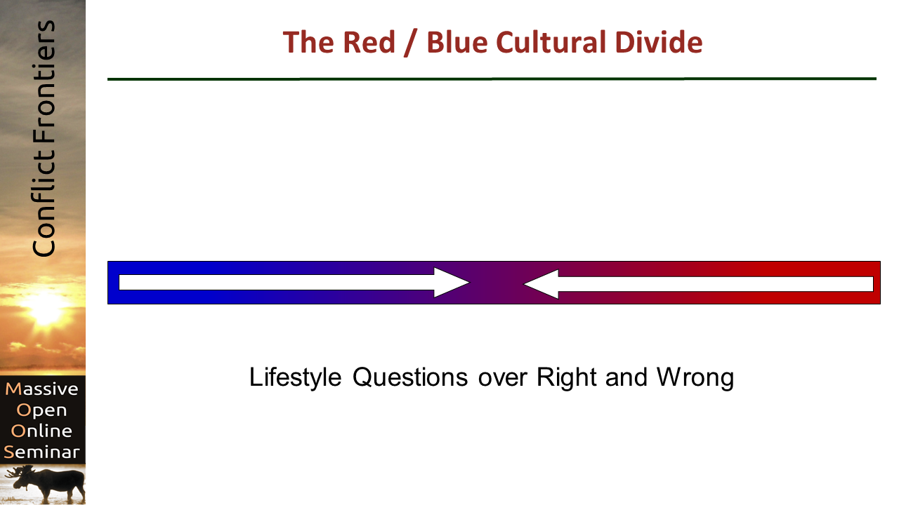 Slide 3. What I want to talk about in this post is the culture divide, the culture war, and the lifestyle questions over what's right and what's wrong that divide liberals and conservatives.