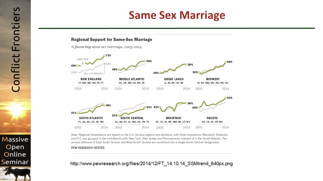 Slide 33. Or, you can look at this chart which illustrates changes in support for same sex marriage over time. Again, you can see, there were big cultural changes on this issue.