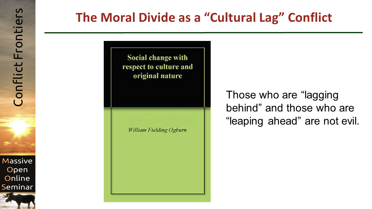 Slide 31. Another way to look at this is in the context of William Ogburn's notion of "cultural lag." Over time, cultures adapt to changing conditions within the society. Not surprisingly, some folks adapt faster than others and some societies adapt faster than others.
